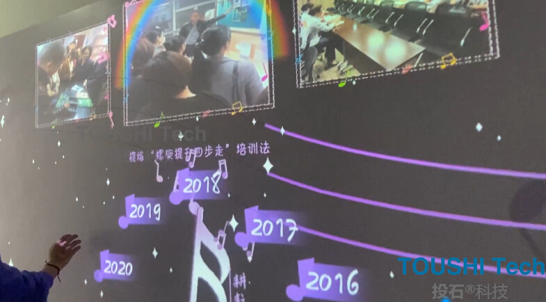 時(shí)間,總是由奮斗定義!2021年3月,南京投石智能系統(tǒng)為江蘇國家電網(wǎng)南通供電公司智慧能源展廳提供3通道觸摸墻互動裝置。投石智能系統(tǒng)雷達(dá)觸摸墻互動裝置它是由投影機(jī)、融合軟件、激光觸摸感應(yīng)設(shè)備、互動控制軟件等組成,可支持多人一起互動觸控操作。當(dāng)體驗(yàn)者觸摸互動墻,屏幕上就會冒出各種魔幻的浮動特效,比如各種動物、花、音樂、卡通人等等,效果極具科技感。在展館展廳內(nèi),可以通過海量圖片、視頻等等來集中展示企業(yè)事業(yè)單位大事件、企業(yè)文化等。