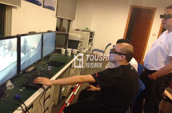 2012年5月,南京投石智能系統(tǒng)有限公司為某機構(gòu)實施了基于NVIDIA 3D Vision Surround的立體三屏技術(shù),用于軍事仿真展示用途。NV方案的兩大賣點是立體和環(huán)幕。簡單地說,該技術(shù)就是將3D Vision立體幻鏡技術(shù)擴展到三屏拼接環(huán)幕系統(tǒng)中。3D Vision立體技術(shù)是NVIDIA多屏方案相比AMD Eyefinity的一大優(yōu)勢。組建3D立體多屏(3D Vision Surround)系統(tǒng)需要三臺均支持3D Vision技術(shù)(120Hz)的液晶顯示器或投影儀,單個分辨率最高1920x1080; 3D Vision Surround技術(shù)支持邊框糾正功能,讓用戶可以全視角地體驗游戲。