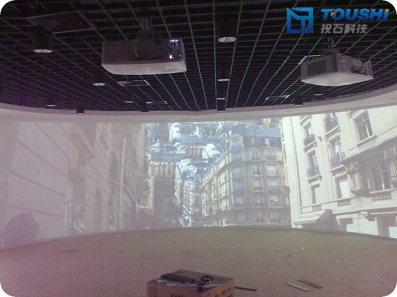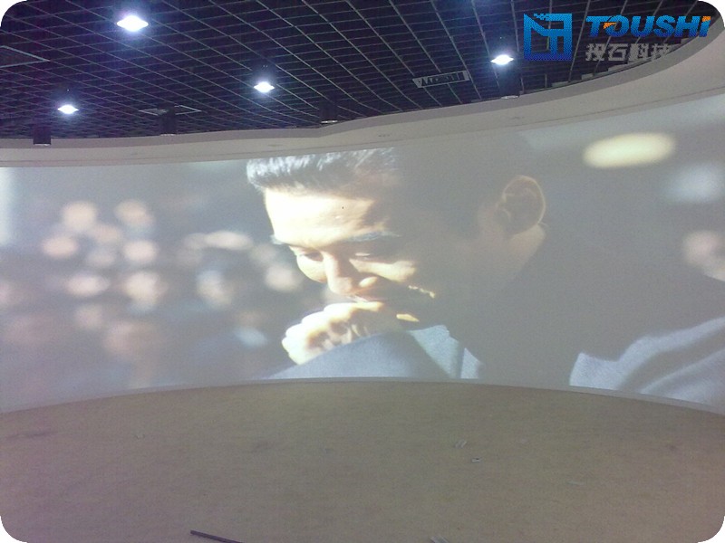 2011年12月上旬,南京投石智能系統(tǒng)有限公司實(shí)施完成淮安市煙草公司企業(yè)休閑展廳多媒體系統(tǒng)工程。這是繼完成南通市煙草公司等煙草行業(yè)企業(yè)文化展廳建設(shè)之后,南京投石智能系統(tǒng)有限公司又一例煙草行業(yè)展廳多媒體工程成功案例。本項(xiàng)目中,投石弧幕系統(tǒng)采用三通道桌面融合技術(shù),采用三臺(tái)三洋XM1000C伍仟流明高流明投影機(jī)和正投融合專用幕布,形成弧度131度,弧長8.77米,高度2.37米的弧形觀影區(qū),結(jié)合YAMAHA5.1音響功放系統(tǒng)的完美結(jié)合,為用戶帶來氣勢(shì)磅礴、場(chǎng)景宏偉的觀看感受。在墻面投影沙盤區(qū)域,參觀者可以通過桌面式22寸觸控一體機(jī)選擇播放相應(yīng)的視頻片段投影。