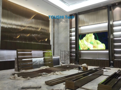 項目內容:南京投石智能系統(tǒng)在臺州為保集御府售樓處提供3*3拼接屏裝置。