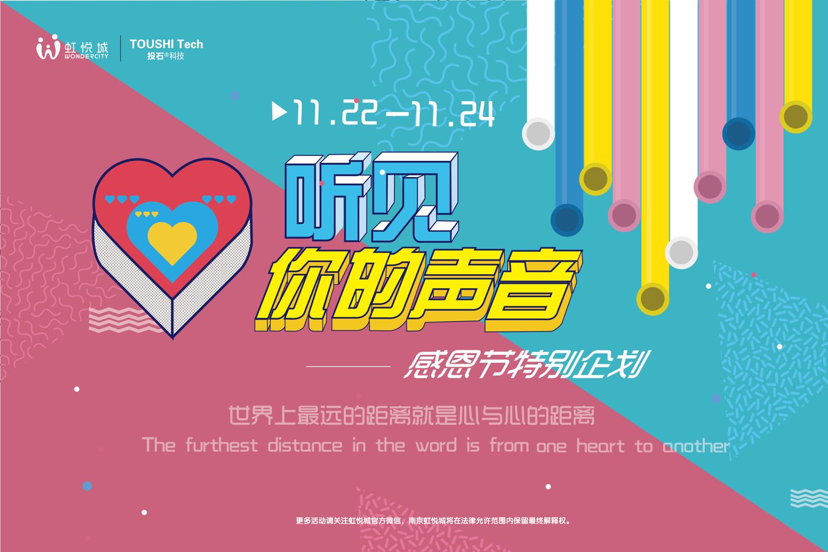 項(xiàng)目內(nèi)容:知足,感恩。投石智能系統(tǒng)品牌活動(dòng)“2018聽見你的聲音”—南京虹悅城感恩節(jié)聲音郵局互動(dòng)裝置,11.22-11.24南京虹悅城商場(chǎng)我們不見不散。