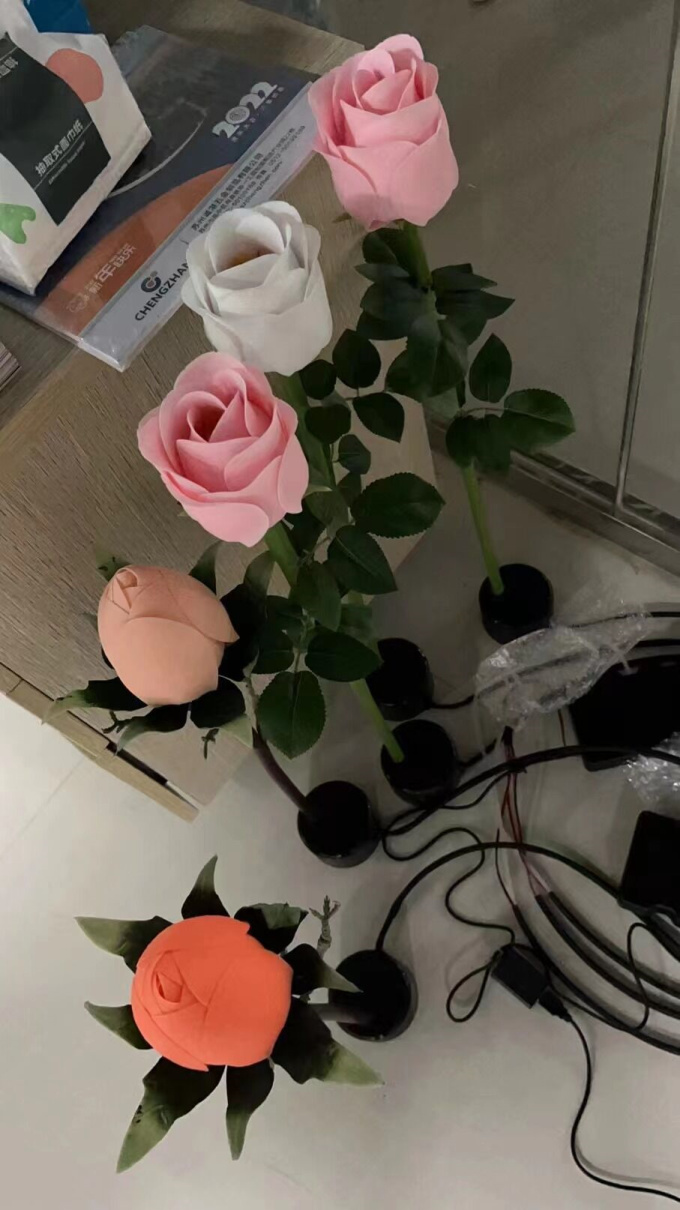 本次技術(shù)方案,材質(zhì)上采用硅膠,有玫瑰和玉蘭二種花造型,感應(yīng)器安裝在玻璃內(nèi)實現(xiàn)紅外觸發(fā)。直徑15~20cm,滿足公交車櫥窗空間狹小的特點。