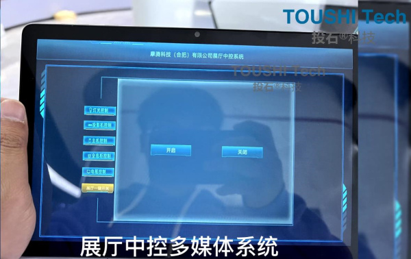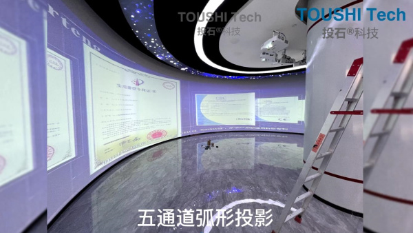 項目內(nèi)容:2022年11月,投石智能系統(tǒng)為安徽摩騰科技合肥工廠展廳項目提供全息柜,五通道弧形投影,展廳中控多媒體裝置。