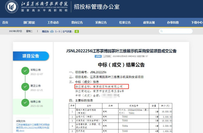 圖:江蘇農(nóng)林職業(yè)技術學院官網(wǎng)中標公告