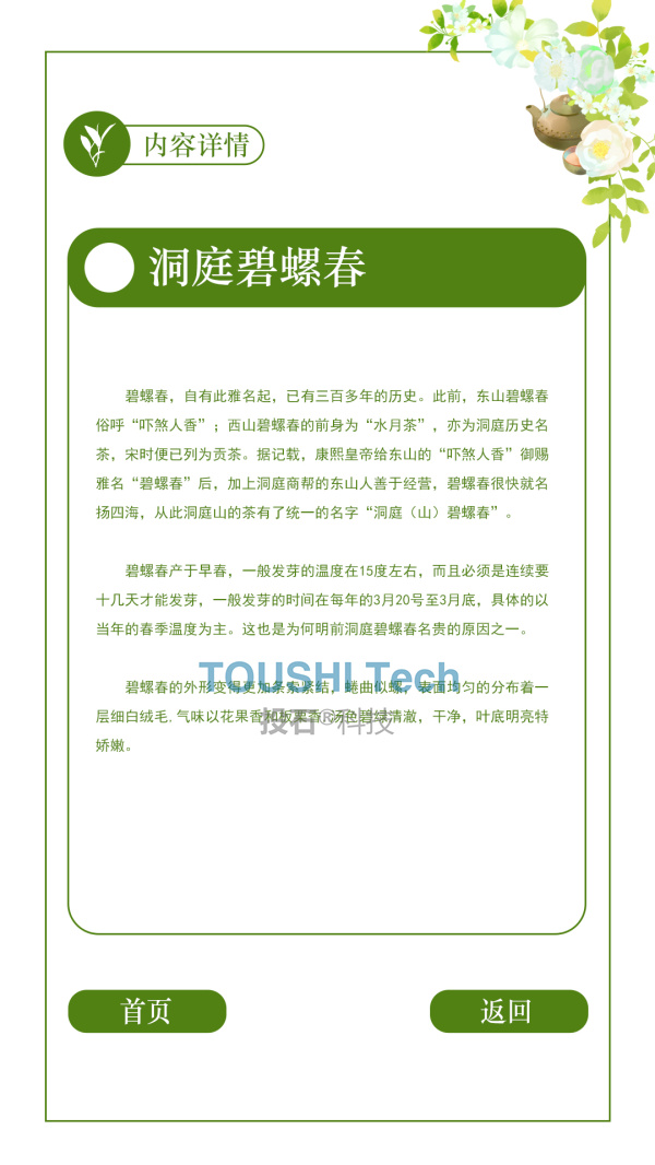 江蘇茶博園茶葉知識查詢軟件界面設計圖: