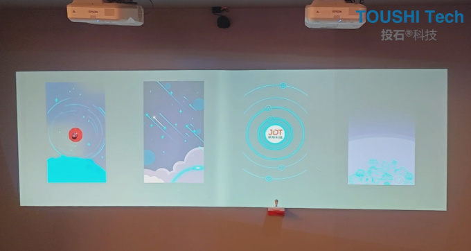 設(shè)備組成:二臺愛普生超短焦投影儀、一個激光感應(yīng)雷達(dá)、一套2.0聲道音響、一臺電腦主機、二套吊架、線材若干。
