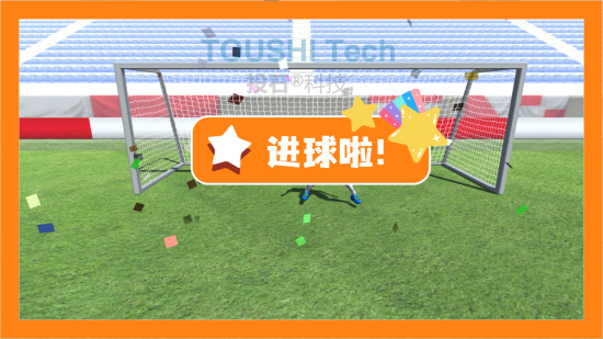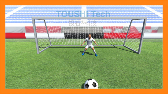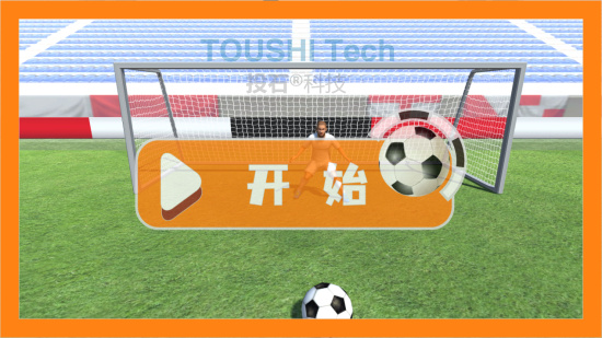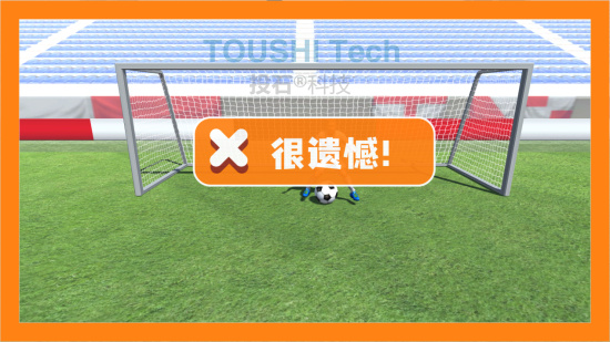 用戶進(jìn)入體驗(yàn)區(qū)域,開始踢球。踢進(jìn)球門后,軟件中足球也會(huì)踢進(jìn)球門相應(yīng)位置,有趣的是軟件中會(huì)有一個(gè)守門員,來一場(chǎng)與守門員的博弈吧。