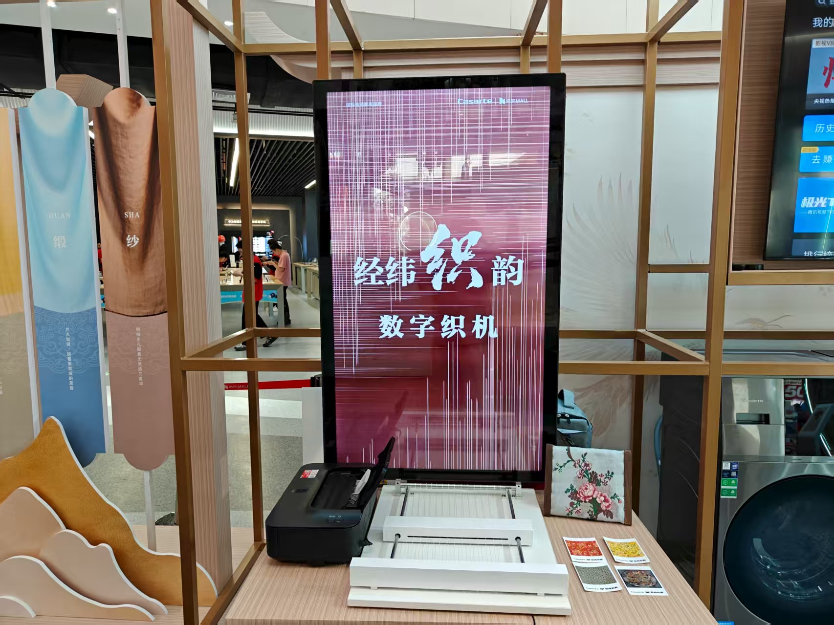 2025年8月29日-30日,國(guó)際家電高端品牌卡薩帝攜手南京云錦博物館,在京東 MALL(大明路店)一層中庭啟動(dòng) “經(jīng)緯織韻”主題線下。在織機(jī)展區(qū),不僅能近距離觀摩大花樓織機(jī)的傳統(tǒng)工藝,還可參與 “數(shù)字織機(jī)” 互動(dòng) —— 憑 “織愛憑證”可兌換團(tuán)扇、真絲發(fā)圈等非遺主題限量禮品。