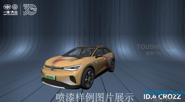 3、噴槍取色后對準屏幕中汽車進行噴漆;