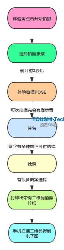 04.也可以拿手機(jī)掃描左上角二維碼,打印機(jī)啟動,手機(jī)獲得電子版圖片以及動態(tài)三連拍GIF。 使用流程參考圖: