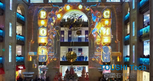 聲稱東歐比較大的3D mapping安裝。使用戶外三維交互投影技術(shù)(3D mapping),將3D互動(dòng)畫(huà)面映射到墻上商場(chǎng)的建筑上,打造出一個(gè)大規(guī)模的動(dòng)態(tài)兒童魔幻樂(lè)園。