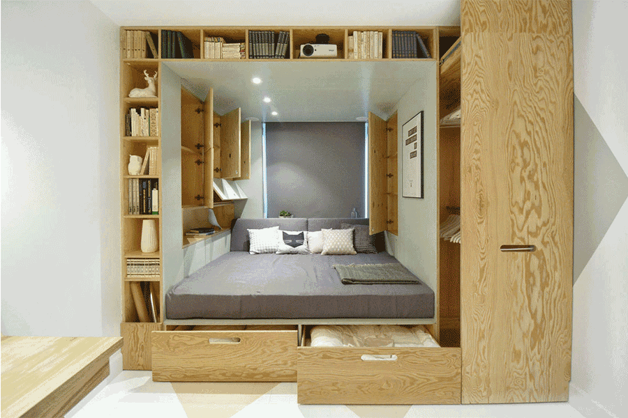 客廳臥室一鍵切換,同時擁有大客廳和大臥室。