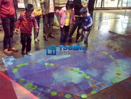 投石地面互動投影系統(tǒng)通過影像動作識別,機(jī)器視覺等技術(shù),結(jié)合全新的創(chuàng)意表現(xiàn)形式,提供了多達(dá)數(shù)十種動態(tài)絢麗的互動效果,引起眾多參觀者駐足嬉戲.譬如當(dāng)游客步入投影在地面上的水池動畫畫面時,魚兒像受了驚嚇,紛紛游開,當(dāng)游客一離開,魚兒又會正常游動,一切都如同身臨其境,從而營造一個美麗虛幻的魔幻空間,將不可能變?yōu)榭赡埽瑢⒂慰蛶胍环N虛實(shí)融合、亦真亦幻的奇妙世界。投石地面互動投影系統(tǒng)自帶近40多款互動游戲,極大地滿足了市場上常見的互動游戲需求。