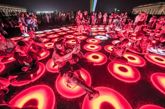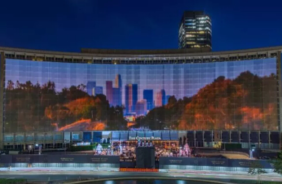 為慶祝美國洛杉磯標(biāo)志性建筑—新都酒店的重建,在世紀(jì)廣場上創(chuàng)造了一場震撼的視聽盛宴。