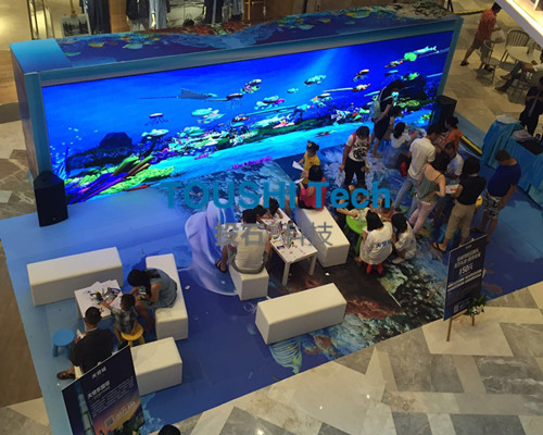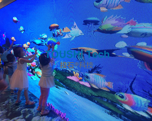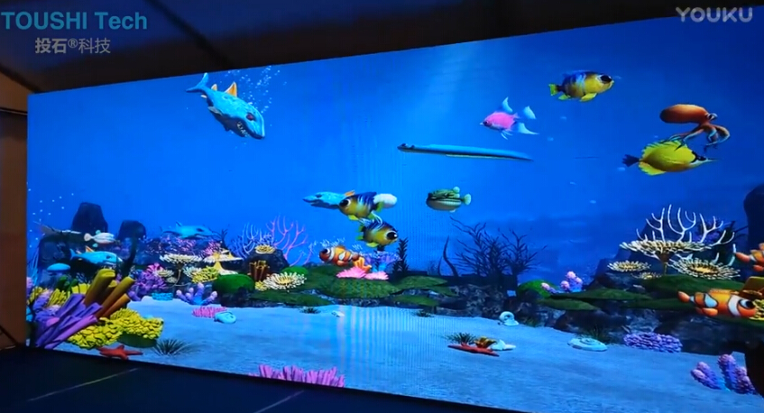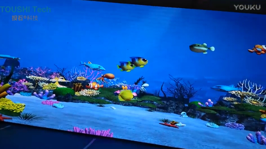 2016年8月13日,廣西自治區(qū)南寧新中心、國際濱江建筑群——天譽(yù)城城市展廳在會展航洋城(一層中庭)盛大開放!共同見證南寧新城市名片的天譽(yù)城的華麗綻放!南京投石智能系統(tǒng)提供3D魔幻魚技術(shù)一套用于4D海洋館,本次活動現(xiàn)場硬件環(huán)境采用P3 LED屏幕,長度8米,高度2米,分辨率達(dá)到2048*512。該系統(tǒng)用于樓盤促銷活動參會人員互動體驗(yàn)。本次項(xiàng)目內(nèi)容包括軟件硬件設(shè)備、運(yùn)維服務(wù)、安裝調(diào)試和有關(guān)輔材。