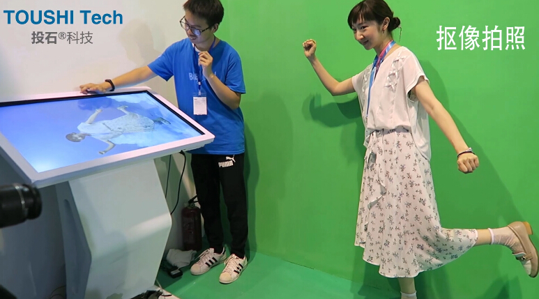6. 投石體感綠幕摳像拍照系統(tǒng)又稱虛擬互動拍照系統(tǒng),是結(jié)合虛擬現(xiàn)實、人物動作識別加上圖像采集合成技術(shù)和非接觸式互動、背景制作等技術(shù),以一種新穎的互動參與形式,用視頻捕捉設(shè)備捕捉參與者的影像,和背景照片進(jìn)行無痕跡的疊加后,即可合成一張令你心儀的照片。并且可以一鍵切換您想要的背景照,還可以結(jié)合電子簽名技術(shù),將您的簽名合成到照片中,通過電子簽名系統(tǒng)的打印功能或分享功能打印這張照片或分享到朋友圈。有很好的產(chǎn)品營銷效果。