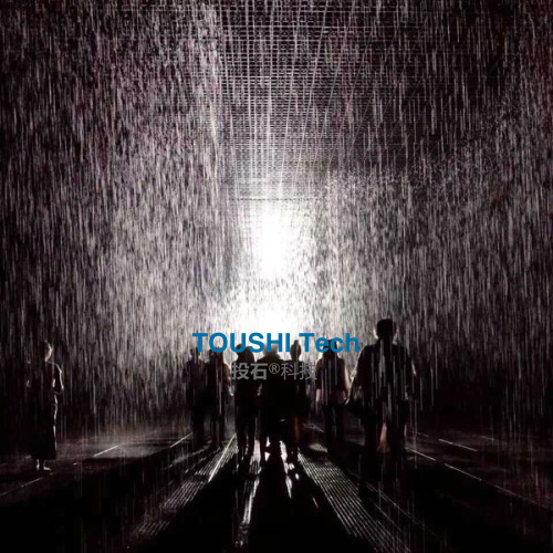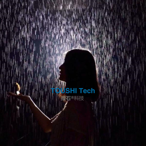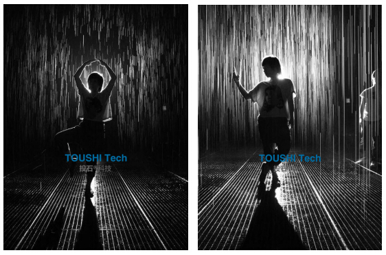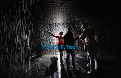 這是一個融合了奇幻與真實(shí)的獨(dú)特詩意空間,你將體驗(yàn)到一場不被淋濕的傾盆大雨,以及“掌控”雨水的神奇感覺。這就是投石智能系統(tǒng)新產(chǎn)品雨屋互動裝置。