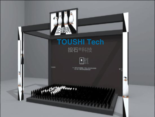 這就是投石智能系統(tǒng)新研發(fā)的新產(chǎn)品體感企鵝矩陣互動裝置。