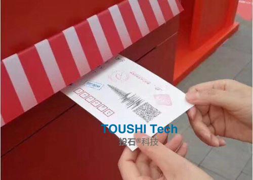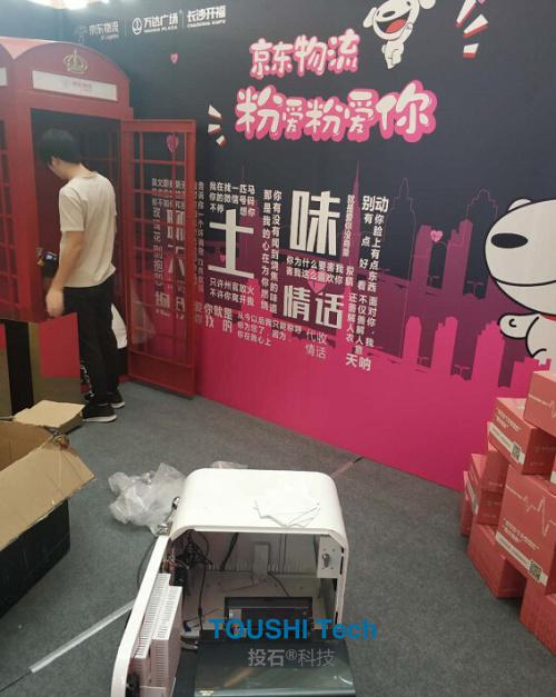 2018年8月,南京投石智能系統(tǒng)在長沙為開福萬達(dá)廣場京東物流提供《聲音郵局》打印互動(dòng)裝置等相關(guān)技術(shù)支持與服務(wù)。我們提供的這款《聲音郵局》設(shè)備是支持現(xiàn)場錄音生成二維碼明信片打印可以郵寄的這種展現(xiàn)形式。