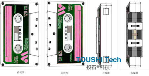這款《可以打印聲波的磁帶》外觀是一個(gè)錄像帶裝置,在“磁帶”模型上安裝觸摸屏和話筒,客人在屏幕上點(diǎn)擊開始,可通過話筒錄音,錄音完成后點(diǎn)擊保存。視頻中會(huì)自動(dòng)生成一個(gè)二維碼,客人可通過掃描二維碼下載錄音。所需設(shè)備:觸摸屏、話筒、電腦、網(wǎng)絡(luò)(現(xiàn)場要有無線網(wǎng))、云服務(wù)器、錄音軟件。