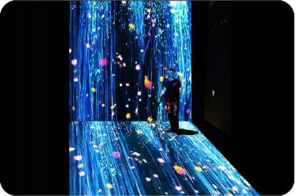 投石全息投影產(chǎn)品之全息花海、流花瀑布、湛藍(lán)宇海、蝴蝶墻系列