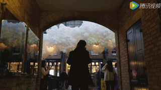 整個裝置全長54米,寬12米,它飄在考文特花園市場天花板上,好似白云漂浮在藍天上一般,極具視覺震撼力,讓人有伸手去抱的沖動。