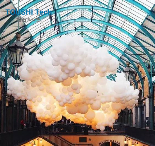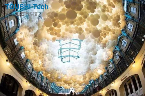這種氣球與燈光結合的藝術互動裝置制造的夢幻場景,太適合和小伙伴們一起來拍照啦!不僅適合拍照,還適合談戀愛、適合告白、適合求婚等等!喜歡互動裝置的朋友可以關注我們投石智能系統(tǒng),這里不定期分享好玩有趣的互動產品。快來和小伙伴在氣球云里玩耍拍照吧!