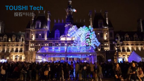 作品由300個氣罐和多色LED燈組成,結構龐大,靈活,反應迅速,在市政廳廣場上搭建起30米高的巨大結構。