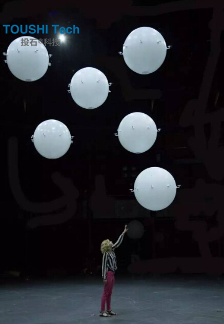 每一個球的表面“長”了一圈“小翅膀”,實際上是小型的螺旋機翼。8個“翅膀”讓白球能夠在劇場半空中隨意飄蕩,其飛行的原理和無人機類似。