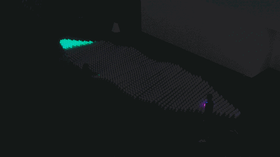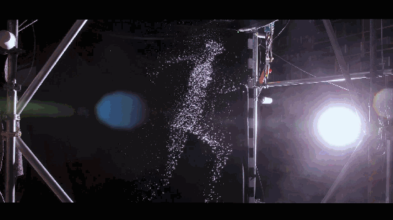 還有交互也是這件作品的一大亮點,當(dāng)參與者站在特定的位置前,揮揮手,水幕對應(yīng)便會出現(xiàn)更加酷炫的效果。你跳舞,它會跟隨著你搖擺;如果你尖叫,它也會作出回應(yīng)。是不是很神奇!
