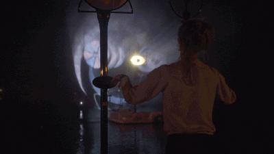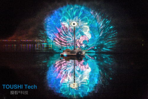 互動裝置Periscopista是在湖面上的一片巨大全息水幕,這是一個帶有迷幻星云效果并且在中間有個眼睛樣?xùn)|西的的巨型裝置。參與人群可以通過聲音和動作來控制它。