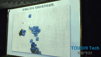 藝術家和星童一起合作創(chuàng)作藝術作品《一影一世界》,并借助投石智能系統(tǒng)互動觸摸布技術實現(xiàn),新媒體藝術和科技手段把這些作品轉化成有互動體驗的,有游戲體驗的藝術裝置。用這種新的“語言”來走進星童的世界,理解他們的所思,所想。
