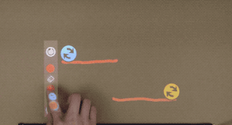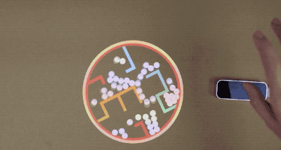 每在桌上放一件物體,小人兒的移動軌跡便會改變:他們與這些物體或跳或爬地互動,有時還會爬到物體上!
