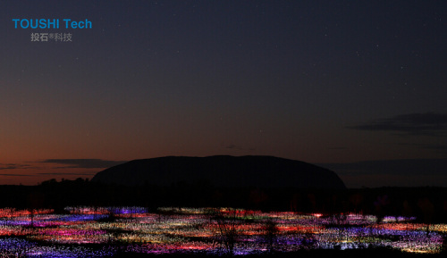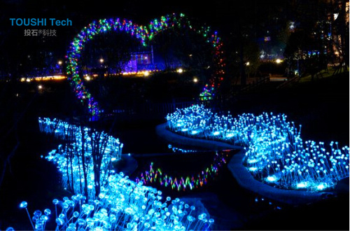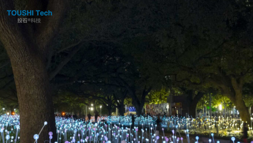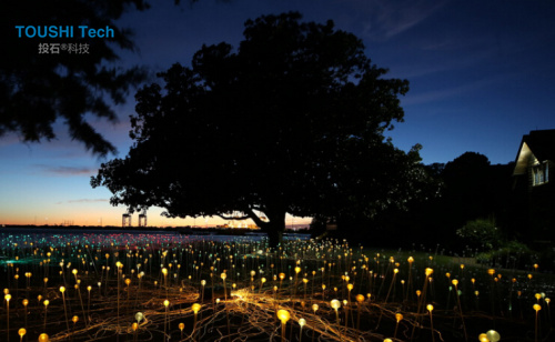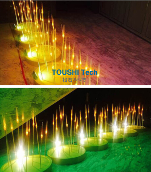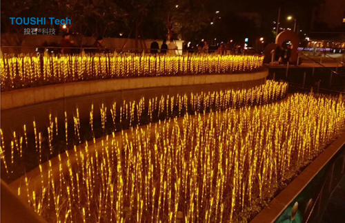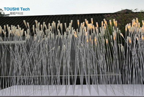 投石智能系統(tǒng)的這款搖擺燈裝置造型逼真,主要由LED燈+磨砂亞克力+不銹鋼桿+底座組成。一叢叢亮閃閃的燈束來回的搖擺不定,是不是很有意思。