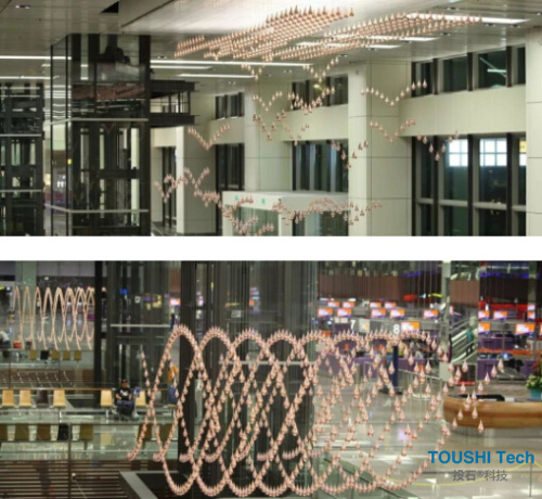 超過千滴“雨水”和諧地一起協(xié)作,雨之舞象征機(jī)場(chǎng)這個(gè)社群的成員們一起合作,給乘客與訪客帶來一個(gè)令他們驚艷萬分的體驗(yàn)。