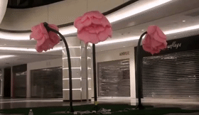 除了明亮有趣的向日葵裝置,這還有一群會害羞的植物。它在沒人時會開花,有人時又會隱藏起自己的花朵。