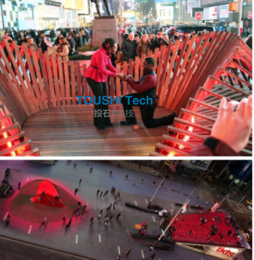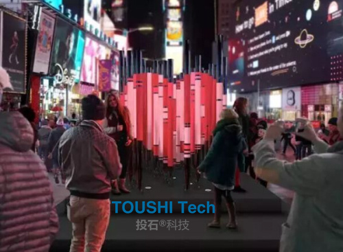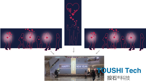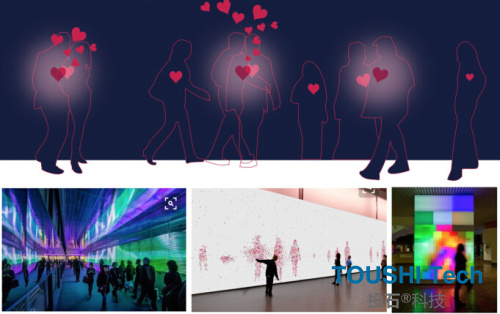 投石的這款裝置適合應用在公共空間(商場,車站......)情人節(jié)活動等,可嵌入品牌宣傳元素心形元素之外,更多效果設計中。