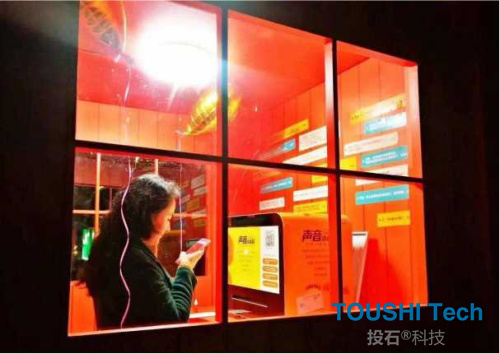 還記得那個時候煲的電話粥嗎?甜言蜜語裝置是模仿老式電話亭的外形搭建,具有密閉性,給用戶很好的安全感。 Kiss kiss愛的互動燈裝置——相愛