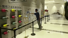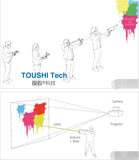 投石智能系統(tǒng)給你一把神奇的”彈弓“,教你把心里話“射”出來。這款數(shù)字智能彈幕彈弓簽到交互裝置展示了彈弓的新玩法,就是在彈弓上的手機(jī)模塊中輸入一條短信,然后就可以將其發(fā)射出去并顯示在遠(yuǎn)處的投影墻上。 互動(dòng)觸摸音樂墻