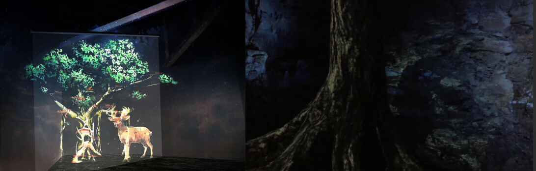 創(chuàng)新應(yīng)用場景商業(yè)體內(nèi)的創(chuàng)新文旅+夜游項目。雨林仙蹤。三個雨林階段的背景循環(huán)更替,動物被踩出來后向館內(nèi)跑去,引導(dǎo)游客前進(jìn)。 精靈全息劇場
