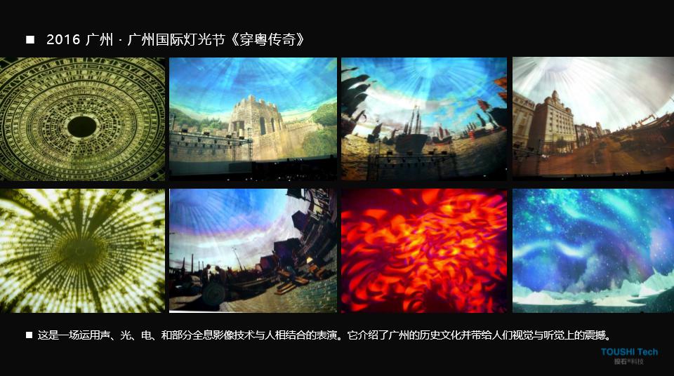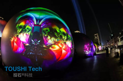 廣州美術(shù)學(xué)院,2019畢業(yè)展開幕式,主題為“不能說的秘密”3D Mapping Show將藝術(shù)美感結(jié)合了現(xiàn)代科技利用全息投影和音樂,在廣州美術(shù)學(xué)院大學(xué)城校區(qū)正門,上演了獨一無二震撼人心的燈光秀。這場活動由廣州美術(shù)學(xué)院視覺藝術(shù)學(xué)院跨媒體工作室攜手2016、2018兩屆奧運(yùn)會開幕式主創(chuàng)團(tuán)隊、中、巴、葡、俄、烏五國新媒體藝術(shù)家,傾情打造一出美輪美奐的視聽盛宴。投石智能系統(tǒng)引進(jìn)了歐美多國裝置藝術(shù)家,創(chuàng)新了國內(nèi)墻體投影秀內(nèi)容來源的多樣化. 《上海外灘未來一公里球幕》