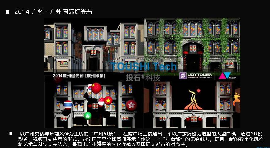 對于當(dāng)下夜游經(jīng)濟(jì)發(fā)展趨勢投石智能系統(tǒng)孫峰峰觀點:文旅夜游產(chǎn)品現(xiàn)狀千城一面,同質(zhì)化嚴(yán)重。目前中國的文旅和夜游市場主流的產(chǎn)品形式是燈光照明、水幕電影、建筑mapping投影秀、實景演藝等。核心缺乏體驗類產(chǎn)品和跨領(lǐng)域融合的新技術(shù)創(chuàng)新。