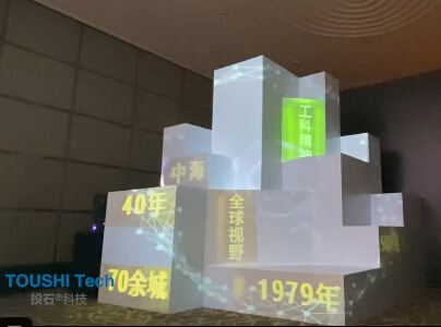 2018年10月,南京投石智能系統(tǒng)在徐州為紅星金茂悅地產(chǎn)發(fā)布會提供戶外方塊體二通道3dmapping投影秀項(xiàng)目技術(shù)支持。 蘇州中鐵品牌發(fā)布會方塊mapping投影秀