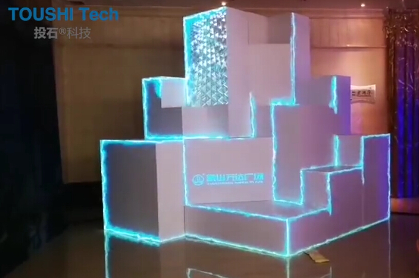 2018年12月,南京投石智能系統(tǒng)在蘇州為中鐵品牌發(fā)布會提供方塊mapping投影設(shè)備及相關(guān)服務(wù)。 2019寧波象山萬達(dá)廣場產(chǎn)品發(fā)布會方塊體Mapping投影