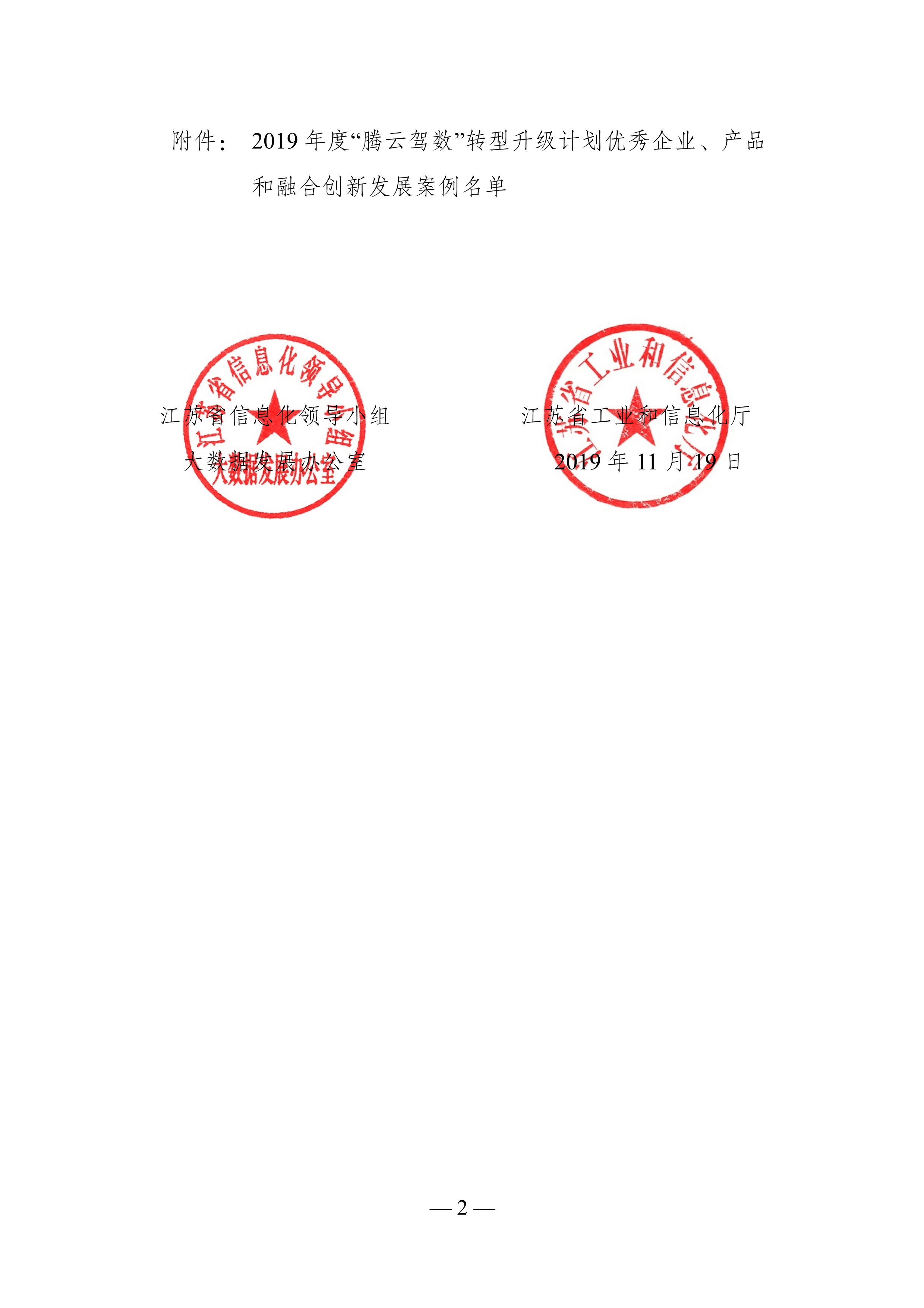 2019年度“騰云駕數(shù)”轉(zhuǎn)型升級計劃優(yōu)秀企業(yè)、產(chǎn)品和融合創(chuàng)新發(fā)展案例名單