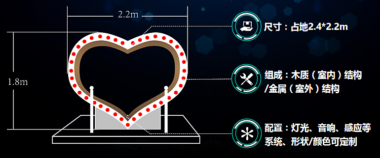 投石的這款裝置適合應(yīng)用在公共空間(商場,車站......)情人節(jié)活動等,可嵌入品牌宣傳元素心形元素之外,更多效果設(shè)計(jì)中。