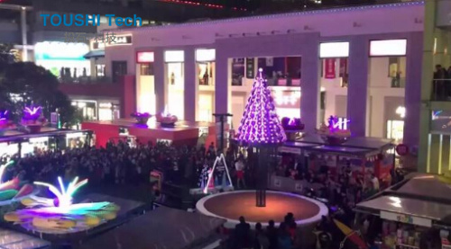 當(dāng)人們對(duì)著這五個(gè)不同的喇叭吶喊時(shí),圣誕樹(shù)就會(huì)產(chǎn)生相應(yīng)的顏色以及不同色彩的變化。極具創(chuàng)意的互動(dòng)方式,也拉近了人與人之間的距離。