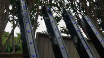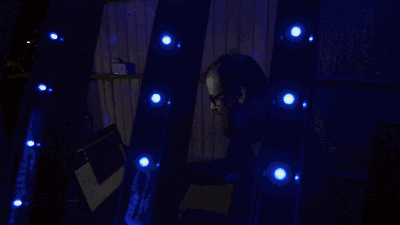 互動(dòng)者可以對(duì)該裝置說(shuō)話,發(fā)出聲音。然后這個(gè)裝置會(huì)將聲音轉(zhuǎn)換為L(zhǎng)ED投射到墻上的視覺(jué)效果。