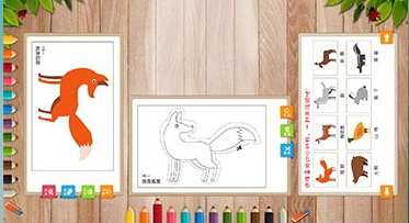 1、觀眾可通過觸摸桌使用蠟筆為固定圖片卡上色,圖片卡類別包括梅花鹿、松鼠、獅子等10種動物,場景中的動物3D模型,有各自類別的運動模式。