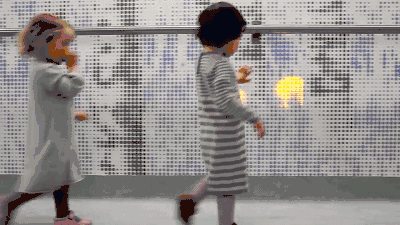 當你做出動作的時候,墻面的人物會出現(xiàn)相對應的動作,就像你的影子一樣。 雙色球互動墻